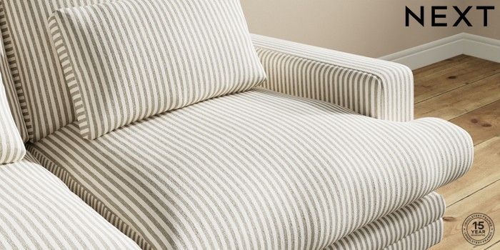 7.0.3 Buy Hutton Deep Relaxed Sit 3 Seater Small Sofa Chenille Stripe Moss Green Country Turned - Light from the Next UK online shop Click here to use our accessible website