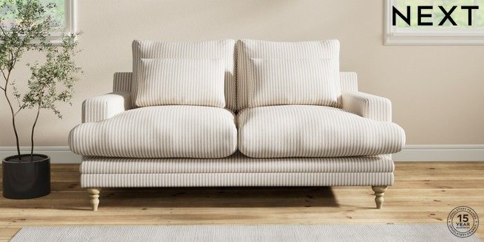 6.12.1 Buy Hutton Deep Relaxed Sit 3 Seater Small Sofa Chenille Stripe Natural Country Turned - Light from the Next UK online shop Click here to use our accessible website