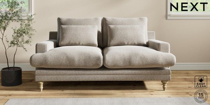 6.12.1 Buy Hutton Deep Relaxed Sit 3 Seater Small Sofa Chunky Boucle Easy Clean Dove Country Turned - Light from the Next UK online shop Click here to use our accessible website