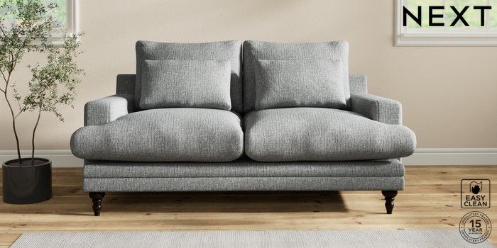 6.12.1 Buy Hutton Deep Relaxed Sit 3 Seater Small Sofa Chunky Boucle Easy Clean Mid Grey Country Turned - Dark from the Next UK online shop Click here to use our accessible website