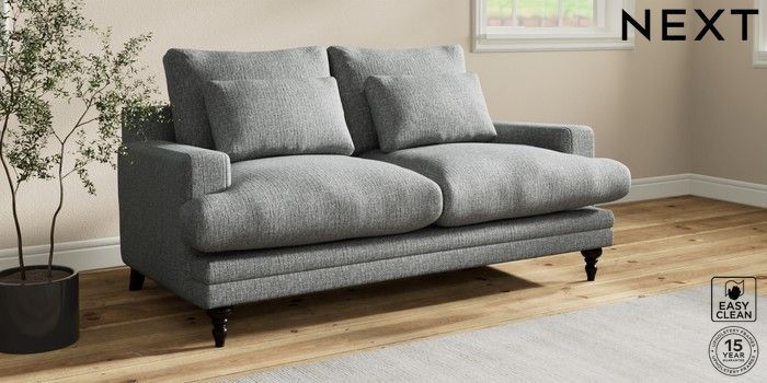 7.0.3 Buy Hutton Deep Relaxed Sit 3 Seater Small Sofa Chunky Boucle Easy Clean Mid Grey Country Turned - Dark from the Next UK online shop Click here to use our accessible website