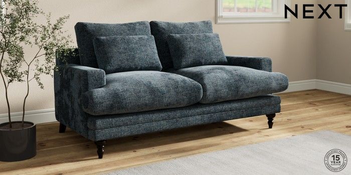 7.0.3 Buy Hutton Deep Relaxed Sit 3 Seater Small Sofa Chunky Chenille Dark Navy Blue Country Turned - Dark from the Next UK online shop Click here to use our accessible website