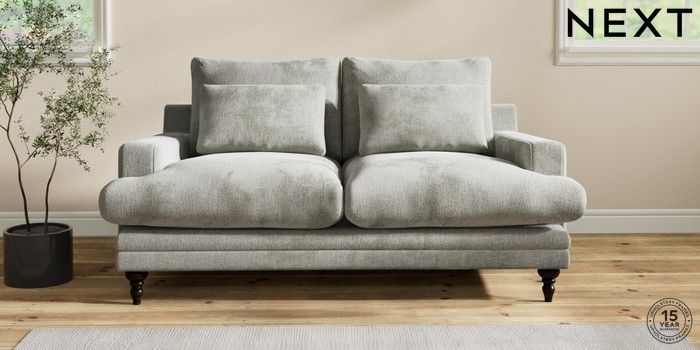 6.12.1 Buy Hutton Deep Relaxed Sit 3 Seater Small Sofa Chunky Chenille Light Grey Country Turned - Dark from the Next UK online shop Click here to use our accessible website