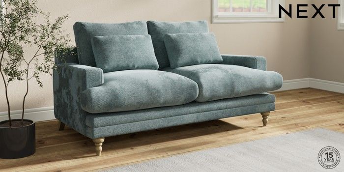 7.0.3 Buy Hutton Deep Relaxed Sit 3 Seater Small Sofa Chunky Chenille Light Teal Green Country Turned - Light from the Next UK online shop Click here to use our accessible website