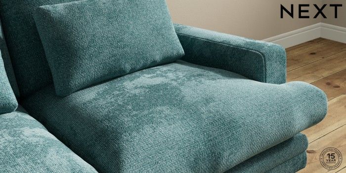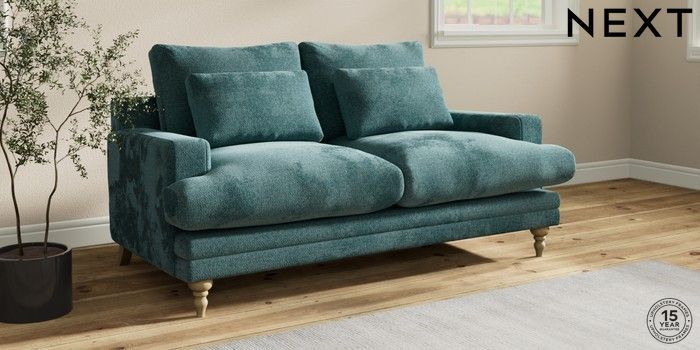 7.0.3 Buy Hutton Deep Relaxed Sit 3 Seater Small Sofa Chunky Chenille Mid Teal Green Country Turned - Light from the Next UK online shop Click here to use our accessible website