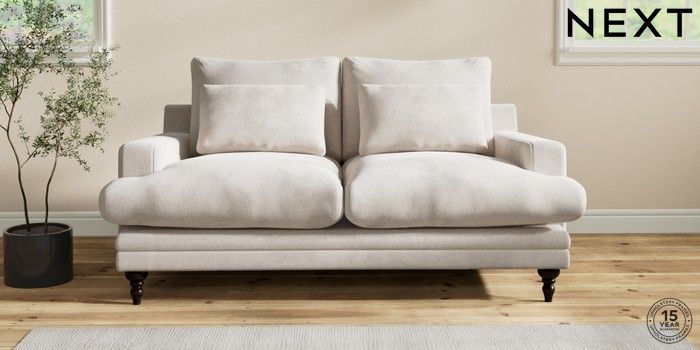 6.12.1 Buy Hutton Deep Relaxed Sit 3 Seater Small Sofa Chunky Chenille Oyster Country Turned - Dark from the Next UK online shop Click here to use our accessible website