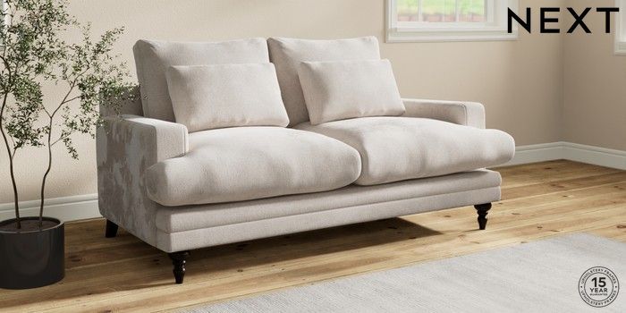 7.0.3 Buy Hutton Deep Relaxed Sit 3 Seater Small Sofa Chunky Chenille Oyster Country Turned - Dark from the Next UK online shop Click here to use our accessible website