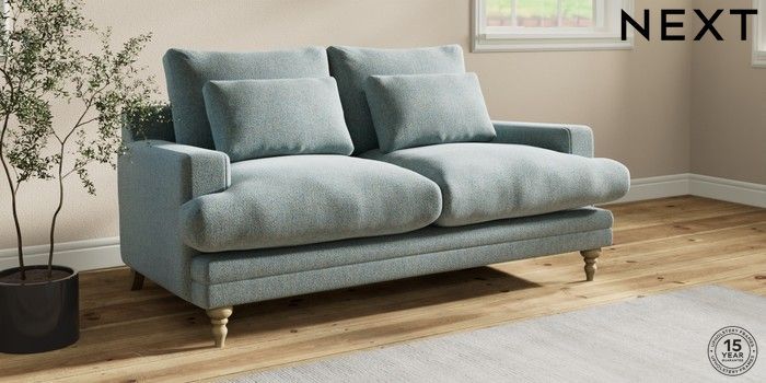 7.0.3 Buy Hutton Deep Relaxed Sit 3 Seater Small Sofa Chunky Marl Mid Blue Country Turned - Light from the Next UK online shop Click here to use our accessible website