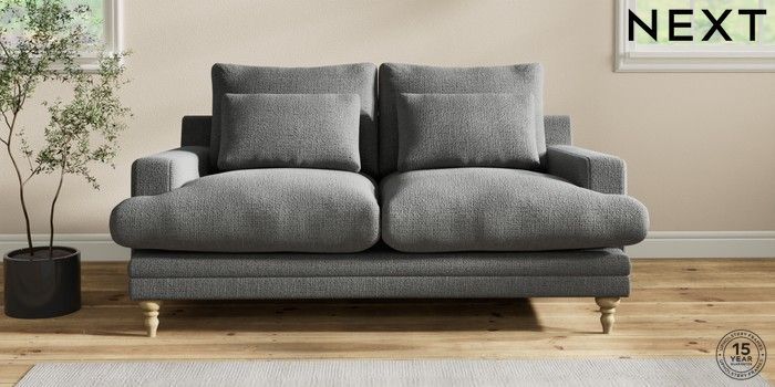 6.12.1 Buy Hutton Deep Relaxed Sit 3 Seater Small Sofa Chunky Texture Dark Grey Country Turned - Light from the Next UK online shop Click here to use our accessible website