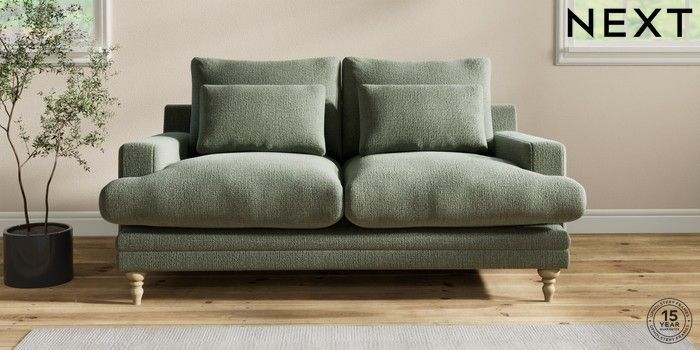 6.12.1 Buy Hutton Deep Relaxed Sit 3 Seater Small Sofa Chunky Texture Mid Forest Green Country Turned - Light from the Next UK online shop Click here to use our accessible website