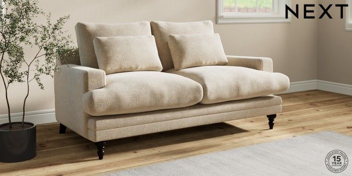 7.0.3 Buy Hutton Deep Relaxed Sit 3 Seater Small Sofa Chunky Weave Cream Country Turned - Dark from the Next UK online shop Click here to use our accessible website