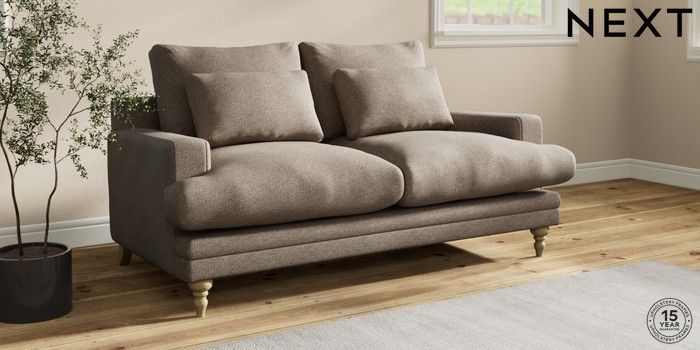 7.0.3 Buy Hutton Deep Relaxed Sit 3 Seater Small Sofa Chunky Weave Dark Natural Country Turned - Light from the Next UK online shop Click here to use our accessible website