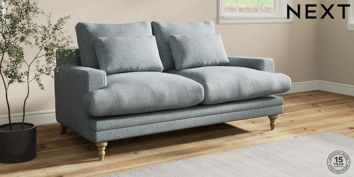 7.0.3 Buy Hutton Deep Relaxed Sit 3 Seater Small Sofa Chunky Weave Mid Blue Country Turned - Light from the Next UK online shop Click here to use our accessible website