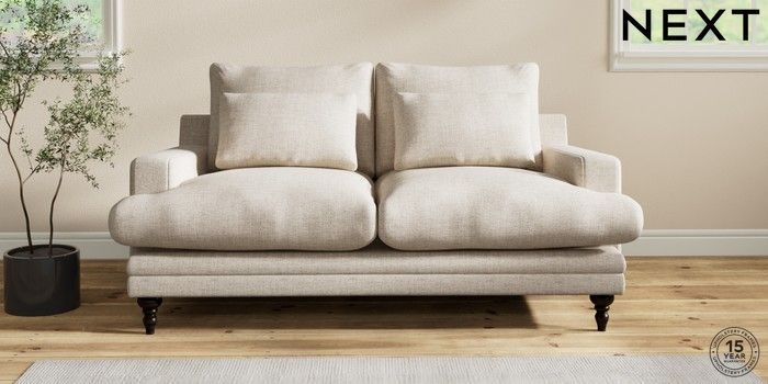 6.12.1 Buy Hutton Deep Relaxed Sit 3 Seater Small Sofa Chunky Weave Mid Natural Country Turned - Dark from the Next UK online shop Click here to use our accessible website