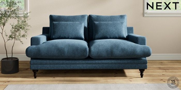 6.12.1 Buy Hutton Deep Relaxed Sit 3 Seater Small Sofa Cotswold Chenille Dark Blue Country Turned - Dark from the Next UK online shop Click here to use our accessible website