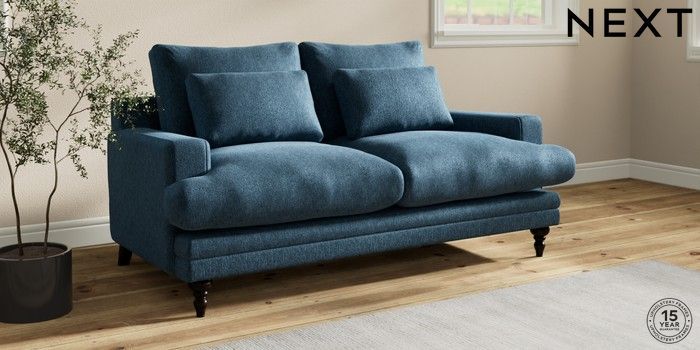 7.0.3 Buy Hutton Deep Relaxed Sit 3 Seater Small Sofa Cotswold Chenille Dark Blue Country Turned - Dark from the Next UK online shop Click here to use our accessible website