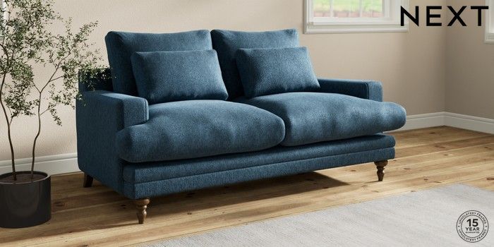 7.0.3 Buy Hutton Deep Relaxed Sit 3 Seater Small Sofa Cotswold Chenille Dark Blue Country Turned - Mid from the Next UK online shop Click here to use our accessible website