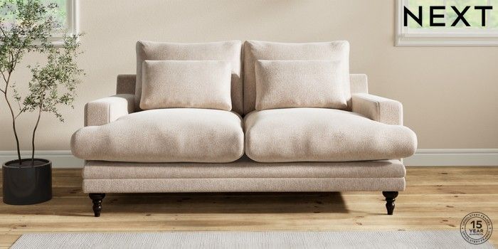 6.12.1 Buy Hutton Deep Relaxed Sit 3 Seater Small Sofa Cotswold Chenille Light Natural Country Turned - Dark from the Next UK online shop Click here to use our accessible website