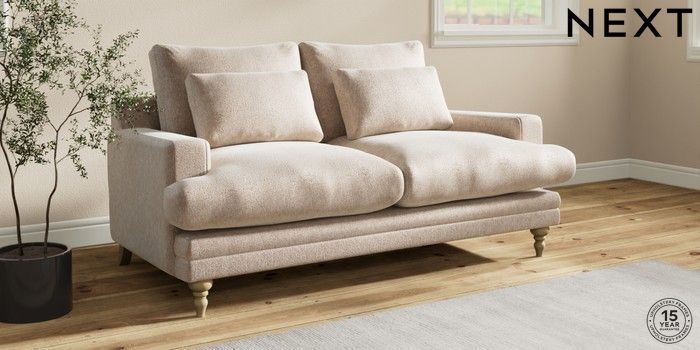 7.0.3 Buy Hutton Deep Relaxed Sit 3 Seater Small Sofa Cotswold Chenille Light Natural Country Turned - Light from the Next UK online shop Click here to use our accessible website