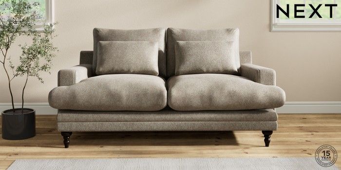 6.12.1 Buy Hutton Deep Relaxed Sit 3 Seater Small Sofa Cotswold Chenille Mid Mink Brown Country Turned - Dark from the Next UK online shop Click here to use our accessible website