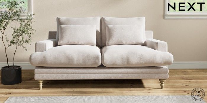 6.12.1 Buy Hutton Deep Relaxed Sit 3 Seater Small Sofa Cotswold Chenille Oyster Country Turned - Light from the Next UK online shop Click here to use our accessible website