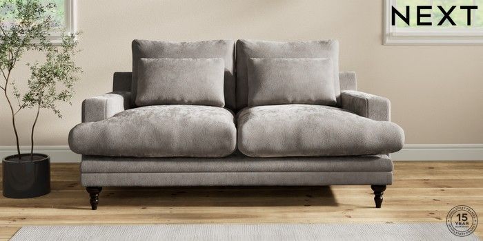 6.12.1 Buy Hutton Deep Relaxed Sit 3 Seater Small Sofa Distressed Velour French Grey Country Turned - Dark from the Next UK online shop Click here to use our accessible website