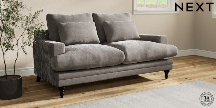 7.0.3 Buy Hutton Deep Relaxed Sit 3 Seater Small Sofa Distressed Velour French Grey Country Turned - Dark from the Next UK online shop Click here to use our accessible website