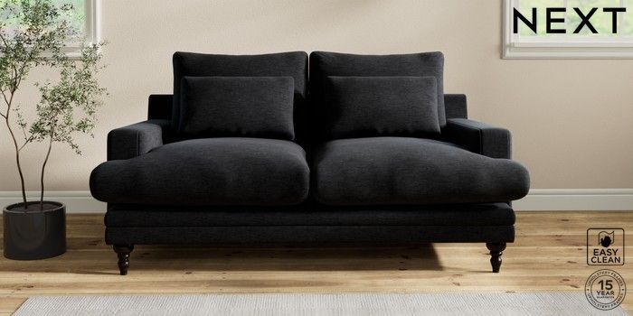6.12.1 Buy Hutton Deep Relaxed Sit 3 Seater Small Sofa Fine Chenille Easy Clean Black Country Turned - Dark from the Next UK online shop Click here to use our accessible website