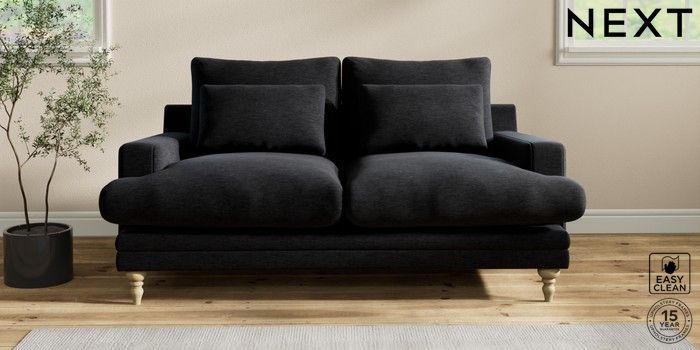 6.12.1 Buy Hutton Deep Relaxed Sit 3 Seater Small Sofa Fine Chenille Easy Clean Black Country Turned - Light from the Next UK online shop Click here to use our accessible website