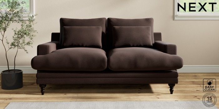 6.12.1 Buy Hutton Deep Relaxed Sit 3 Seater Small Sofa Fine Chenille Easy Clean Chocolate Brown Country Turned - Dark from the Next UK online shop Click here to use our accessible website