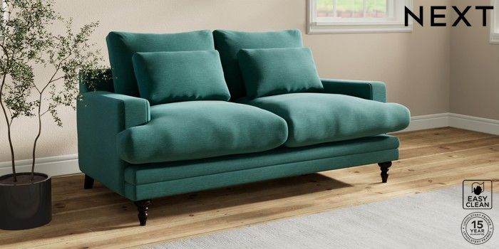 7.0.3 Buy Hutton Deep Relaxed Sit 3 Seater Small Sofa Fine Chenille Easy Clean Dark Juniper Green Country Turned - Dark from the Next UK online shop Click here to use our accessible website
