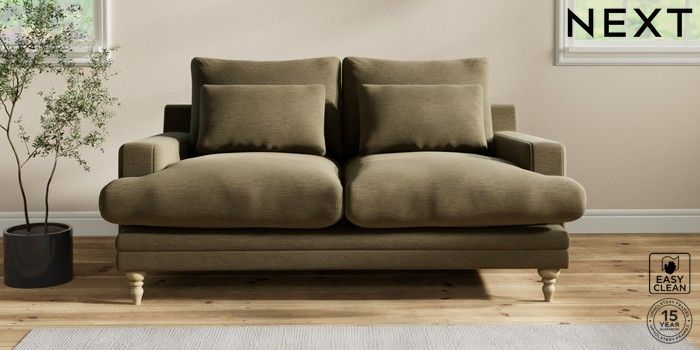 6.12.1 Buy Hutton Deep Relaxed Sit 3 Seater Small Sofa Fine Chenille Easy Clean Dark Moss Green Country Turned - Light from the Next UK online shop Click here to use our accessible website