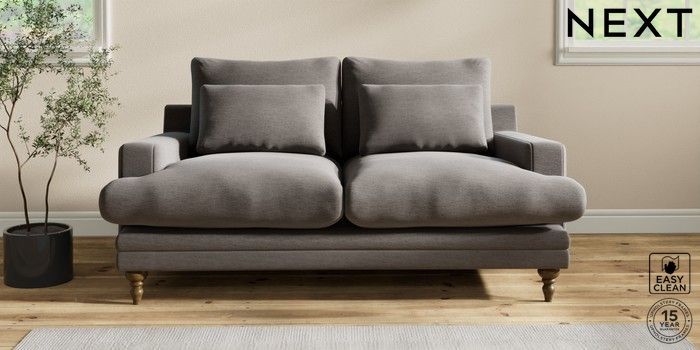 6.12.1 Buy Hutton Deep Relaxed Sit 3 Seater Small Sofa Fine Chenille Easy Clean Dark Smoke Grey Country Turned - Mid from the Next UK online shop Click here to use our accessible website