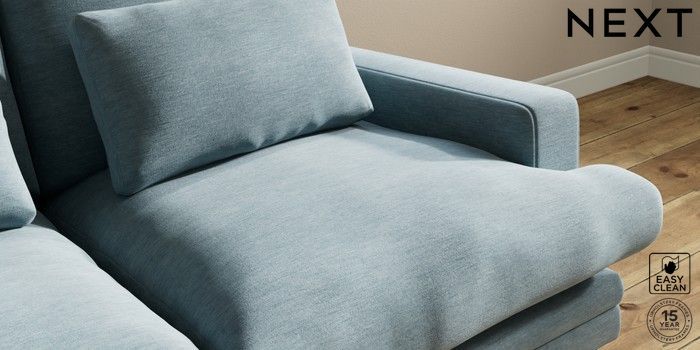 7.0.3 Buy Hutton Deep Relaxed Sit 3 Seater Small Sofa Fine Chenille Easy Clean Mid Blue Country Turned - Dark from the Next UK online shop Click here to use our accessible website