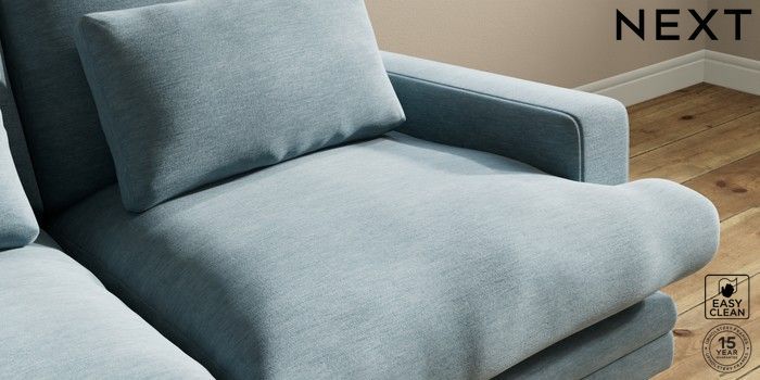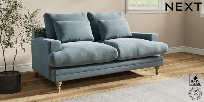 7.0.3 Buy Hutton Deep Relaxed Sit 3 Seater Small Sofa Fine Chenille Easy Clean Mid Blue Country Turned - Light from the Next UK online shop Click here to use our accessible website