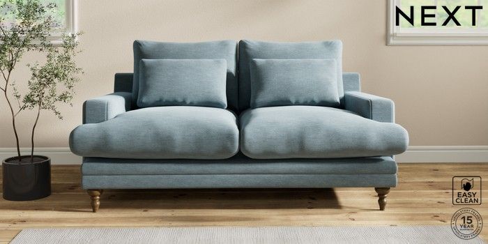 6.12.1 Buy Hutton Deep Relaxed Sit 3 Seater Small Sofa Fine Chenille Easy Clean Mid Blue Country Turned - Mid from the Next UK online shop Click here to use our accessible website