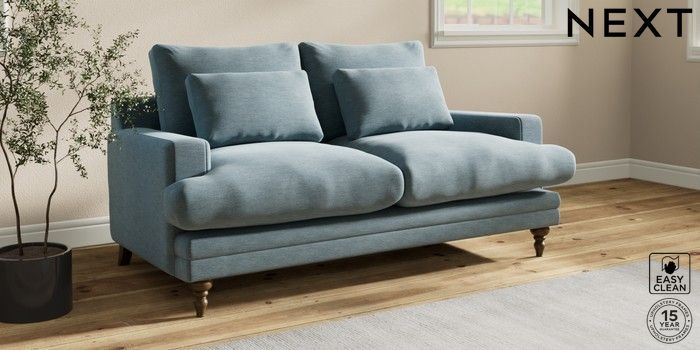 7.0.3 Buy Hutton Deep Relaxed Sit 3 Seater Small Sofa Fine Chenille Easy Clean Mid Blue Country Turned - Mid from the Next UK online shop Click here to use our accessible website