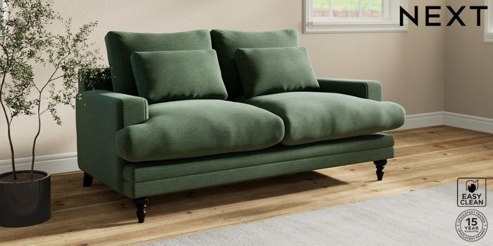 7.0.3 Buy Hutton Deep Relaxed Sit 3 Seater Small Sofa Fine Chenille Easy Clean Mid Khaki Green Country Turned - Dark from the Next UK online shop Click here to use our accessible website