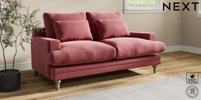 7.0.3 Buy Hutton Deep Relaxed Sit 3 Seater Small Sofa Fine Chenille Easy Clean Mid Pink Country Turned - Light from the Next UK online shop Click here to use our accessible website