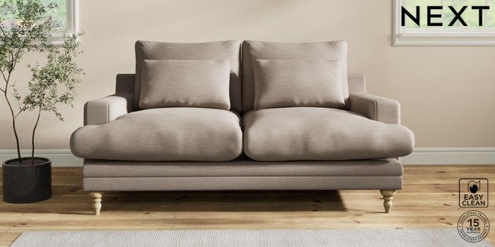 6.12.1 Buy Hutton Deep Relaxed Sit 3 Seater Small Sofa Fine Chenille Easy Clean Mid Taupe Brown Country Turned - Light from the Next UK online shop Click here to use our accessible website