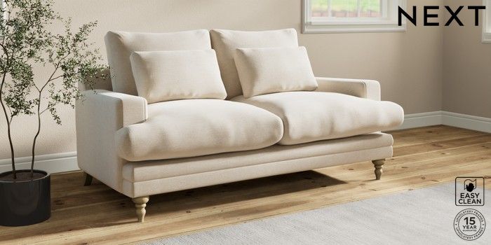 7.0.3 Buy Hutton Deep Relaxed Sit 3 Seater Small Sofa Fine Chenille Easy Clean Oyster Country Turned - Light from the Next UK online shop Click here to use our accessible website