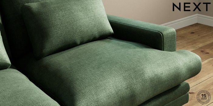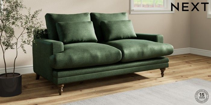 7.0.3 Buy Hutton Deep Relaxed Sit 3 Seater Small Sofa Luxe Chenille Dark Green Country Turned - Mid from the Next UK online shop Click here to use our accessible website