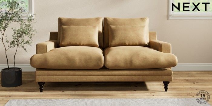 6.12.1 Buy Hutton Deep Relaxed Sit 3 Seater Small Sofa Luxe Chenille Honey Yellow Country Turned - Dark from the Next UK online shop Click here to use our accessible website