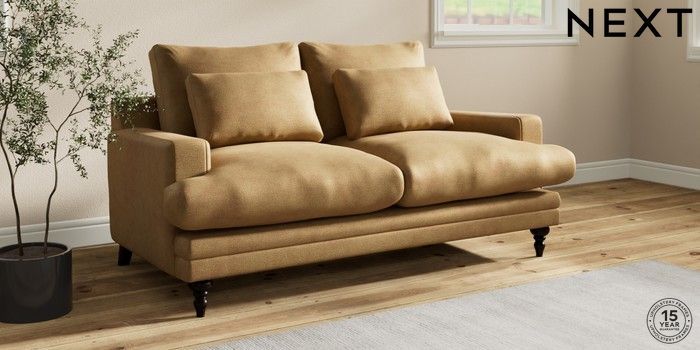 7.0.3 Buy Hutton Deep Relaxed Sit 3 Seater Small Sofa Luxe Chenille Honey Yellow Country Turned - Dark from the Next UK online shop Click here to use our accessible website