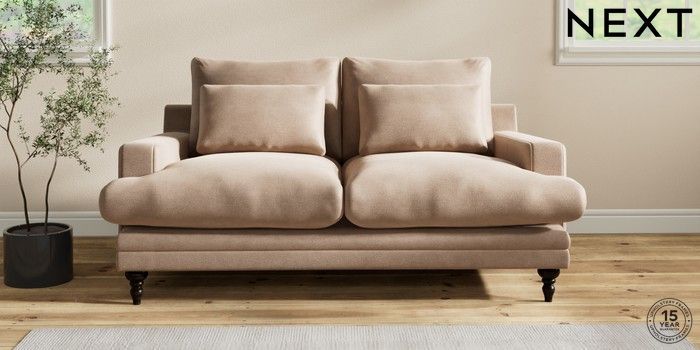 6.12.1 Buy Hutton Deep Relaxed Sit 3 Seater Small Sofa Luxe Chenille Mid Natural Country Turned - Dark from the Next UK online shop Click here to use our accessible website