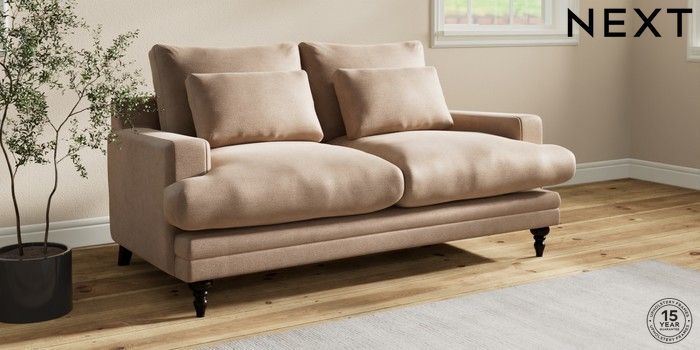 7.0.3 Buy Hutton Deep Relaxed Sit 3 Seater Small Sofa Luxe Chenille Mid Natural Country Turned - Dark from the Next UK online shop Click here to use our accessible website