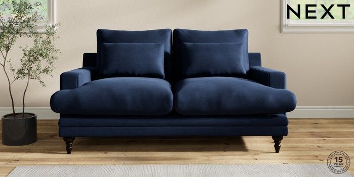 6.12.1 Buy Hutton Deep Relaxed Sit 3 Seater Small Sofa Luxe Chenille Navy Blue Country Turned - Dark from the Next UK online shop Click here to use our accessible website