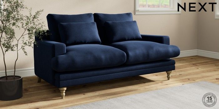 7.0.3 Buy Hutton Deep Relaxed Sit 3 Seater Small Sofa Luxe Chenille Navy Blue Country Turned - Light from the Next UK online shop Click here to use our accessible website