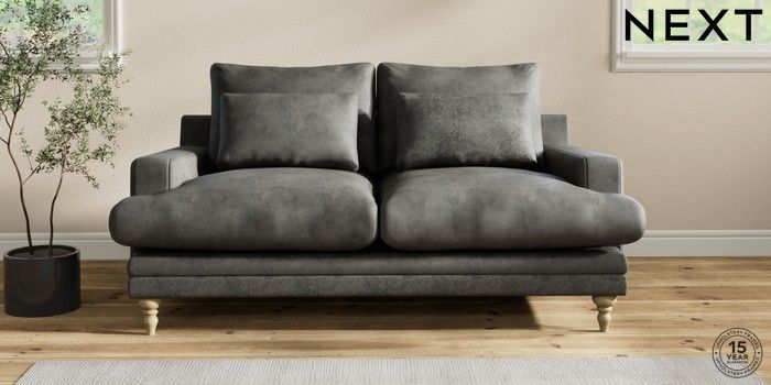 6.12.1 Buy Hutton Deep Relaxed Sit 3 Seater Small Sofa Monza Faux Leather Easy Clean Dark Grey Country Turned - Light from the Next UK online shop Click here to use our accessible website