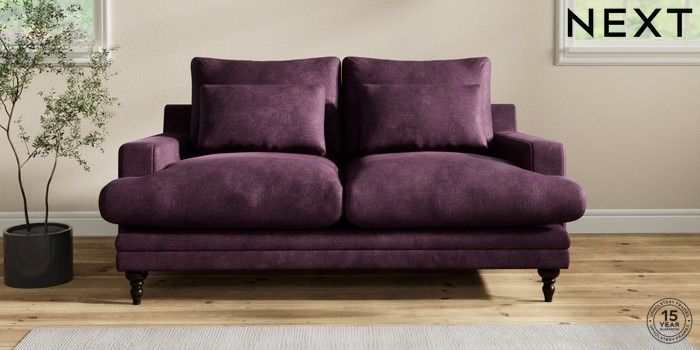 6.12.1 Buy Hutton Deep Relaxed Sit 3 Seater Small Sofa Plush Chenille Dark Plum Purple Country Turned - Dark from the Next UK online shop Click here to use our accessible website